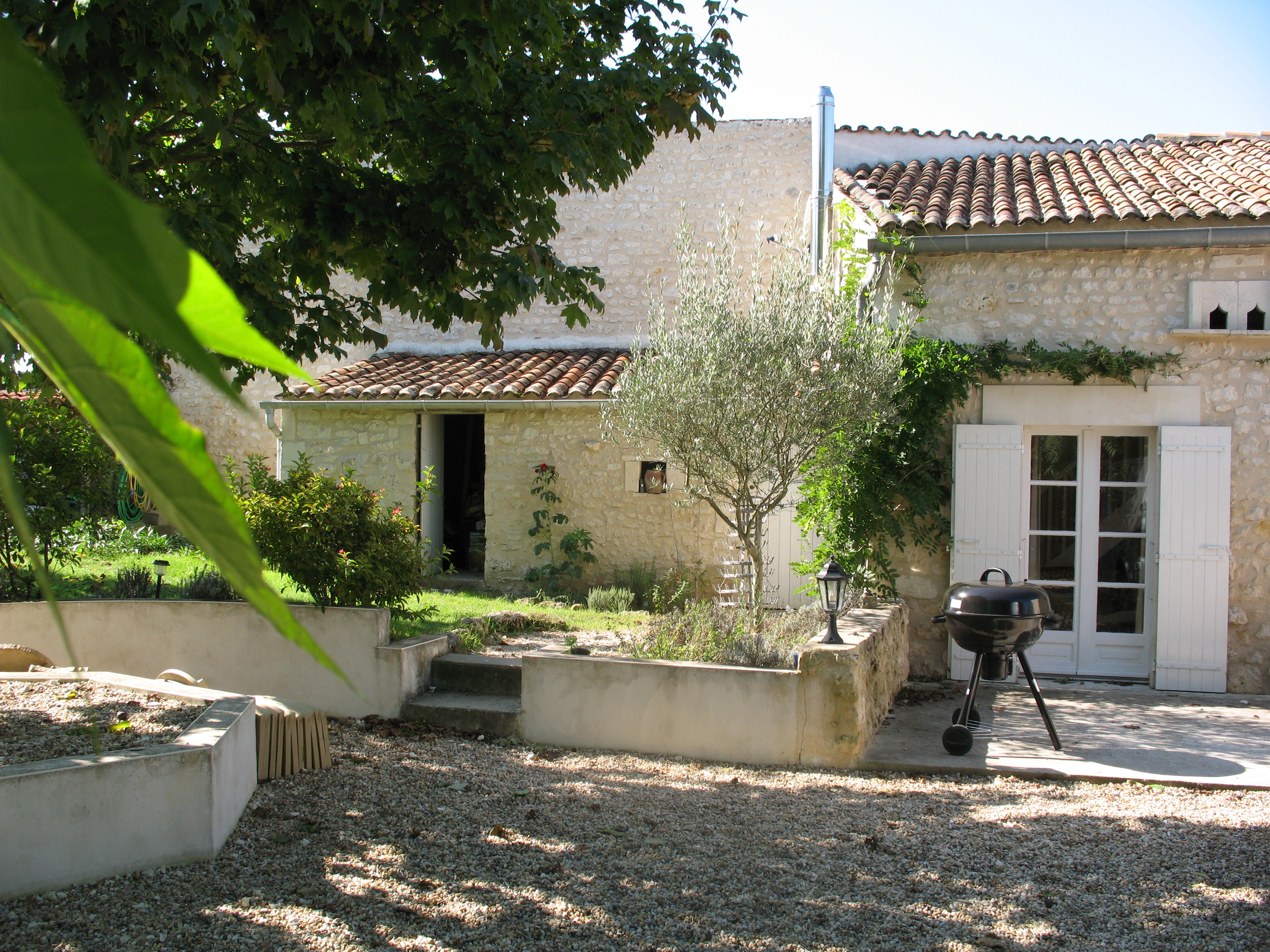 terrace in a private walled courtyard leading to a large 1350m2 garden with 2